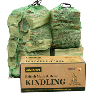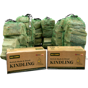 Softwood Log Nets, Box of Kindling and Firelighters Bundle - Brown / 6 Nets of Softwood Logs 1 Box of Kindling and 1 box of firelighters by Maxchips