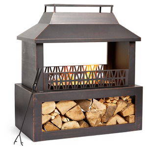 Outdoor Fireplace Fire Pit with Log and Wood Store - Black by VonHaus