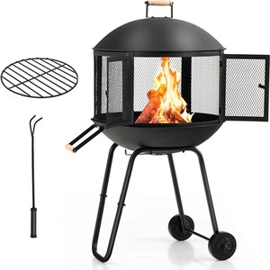 2-in-1 Fire Pit Outdoor Design BBQ - Black