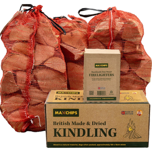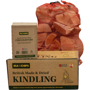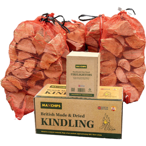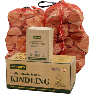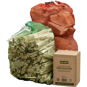 Hardwood Log Nets, Kindling Nets and Box of Firelighters - Brown / 25kg by Maxchips