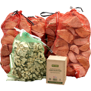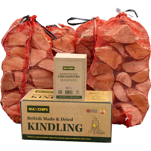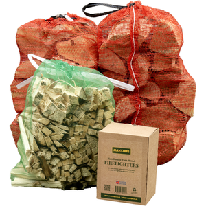 Hardwood Log Nets, Kindling Nets and Box of Firelighters - Brown / 45kg by Maxchips