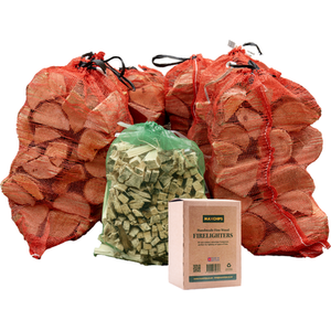 Hardwood Log Nets, Box of Kindling and Box of Firelighters Bundle - Brown / 3 Hardwood Log Nets, 1 Box of Kindling and 1 Box of Firelighters by Maxchips