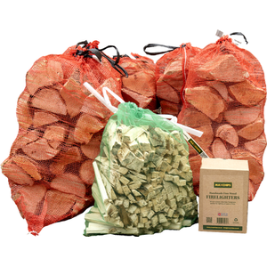 Hardwood Log Nets, Kindling Nets and Box of Firelighters - Brown / 55kg by Maxchips