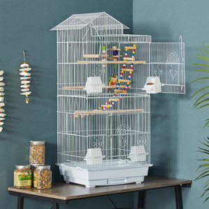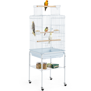 Travel Bird Cage with Open Play Top - White by Yaheetech