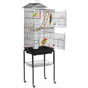 Rolling Bird Cage with Detachable Stand - Black by Yaheetech