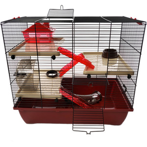Small Animal Cage Maroon Colour with Accessories Three Platforms - The Grand - Maroon by Little Friends