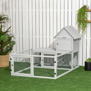PawHut Small Animal Hutch with Extra Fenced Area, Large Cage - Grey by PawHut