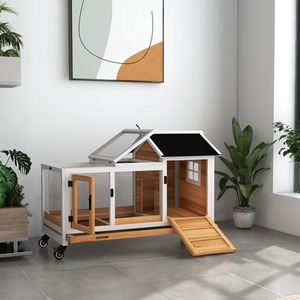 PawHut Small Animal Hutch with Wheels for Outdoor and Indoor - Yellow by PawHut