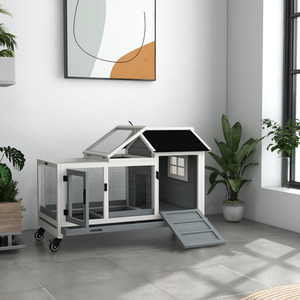 PawHut Small Animal Hutch with Wheels for Outdoor and Indoor - Grey by PawHut