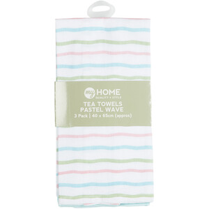 Pack of 3 Pastel Wave Tea Towels - Multicolour by My Home